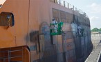 Utilizando uma mistura de fluxo de ar, água, abrasivo e eliminando pouca ou nenhuma contenção de limpeza após o jateamento e reduzindo em ate 97% de partículas suspensas no ar.